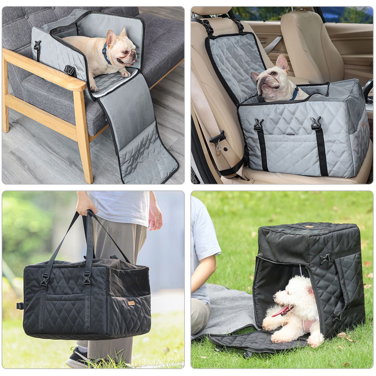 MULTI-FUNCTIONAL: 17.3 quot; x 13.8 quot; x 11.4 quot; (44CM x 35CM x 29CM) for small and medium dogs, or cats. Use it as a car booster seat, a pet carrier, or a pet kennel for car, home, and outdoor. Prepare one for camping or traveling with your pet.
