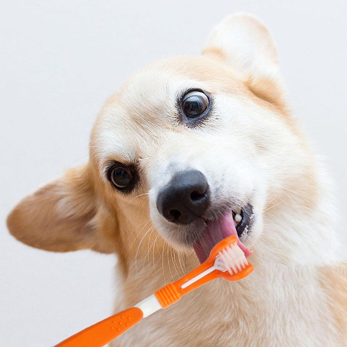 This pet toothbrush features three heads design and multi-angle cleaning, which can clean your pets' oral cavity effectively and thoroughly.