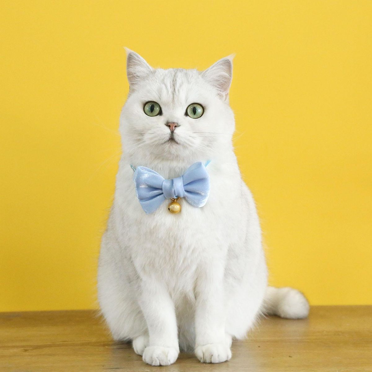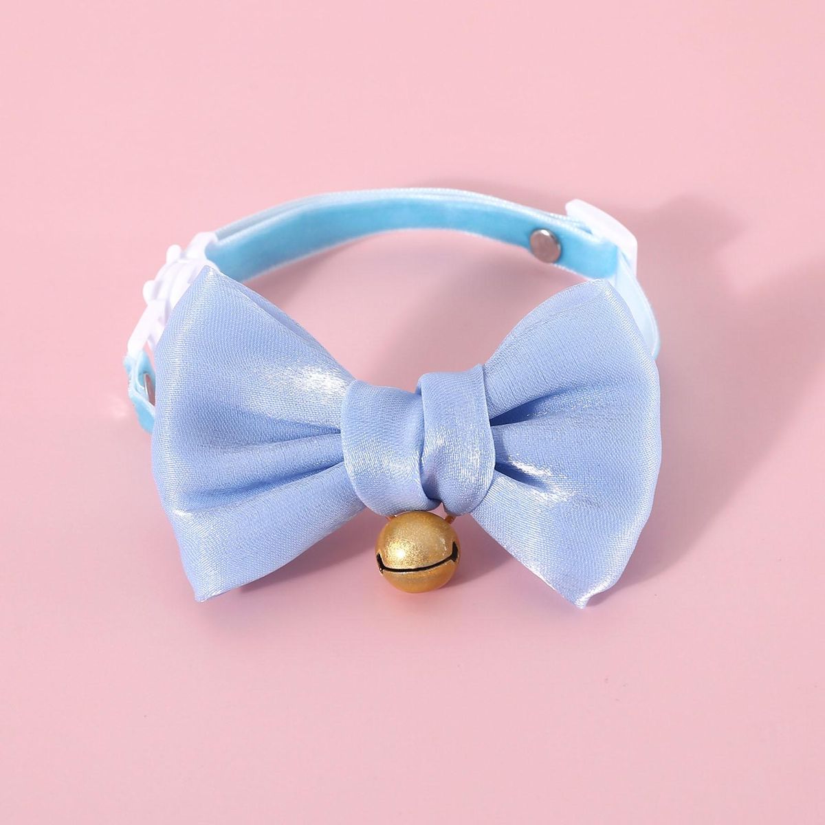 With the characteristics of beautiful pearly-lustre fabric, bell and bow-knot designs, the pet collar is fashion and can make your pet look more lovely and attractive.