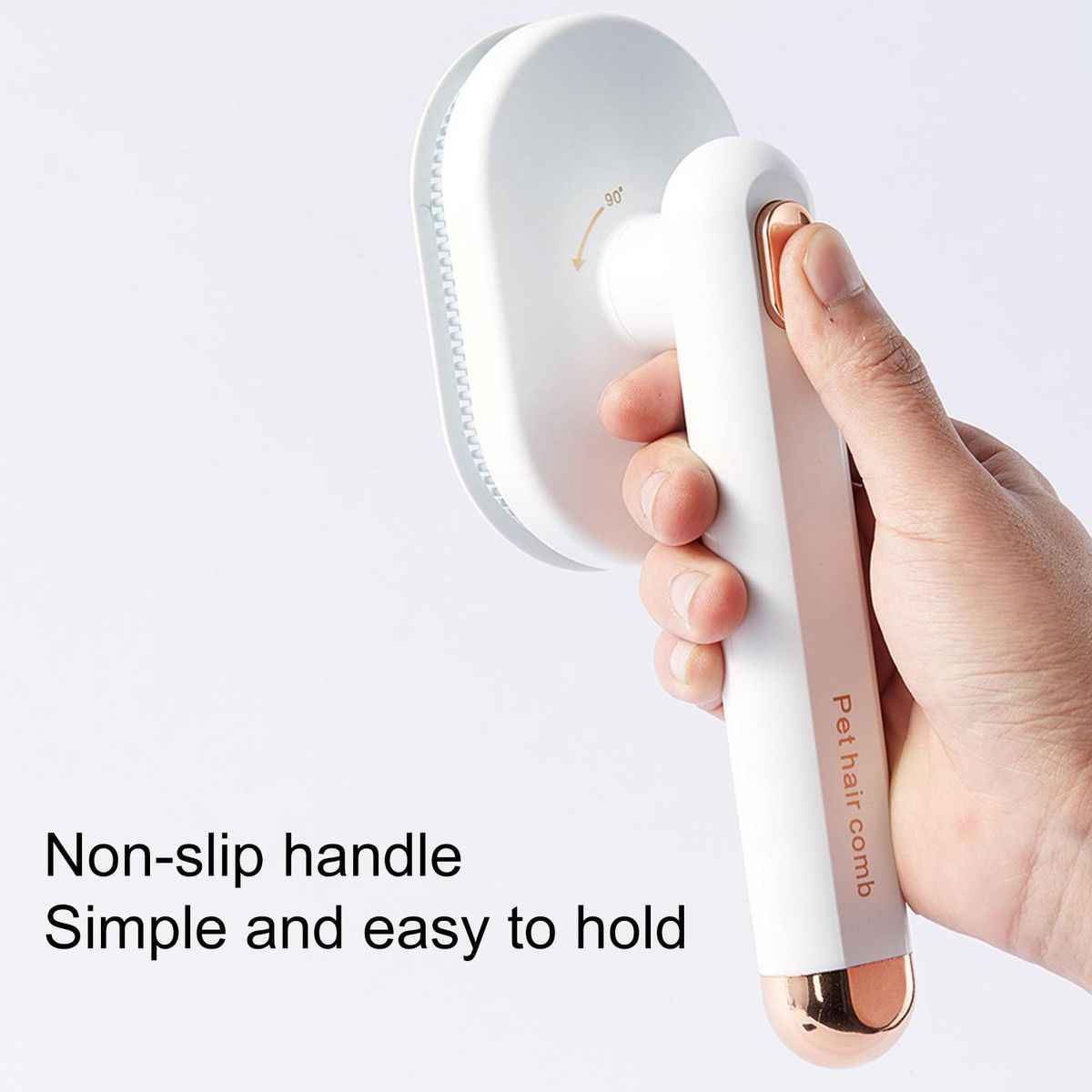 The pet hair brush comes with ergonomic design and non-slip handle which provides comfort and ease. And it can be rotated at 90 degrees.