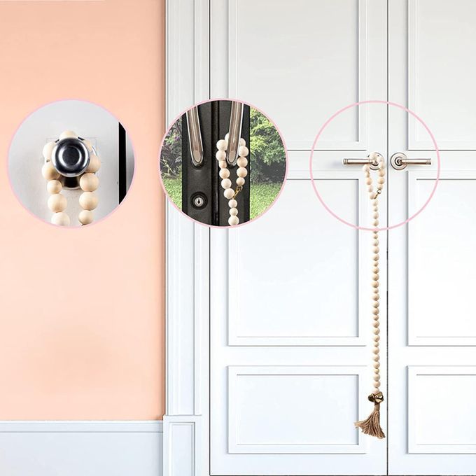 This dog bell includes a clasp on the end so it fits whatever door handle you have. You can easily this dog doorbell from a door knob or attach it to a sliding glass door handle. Easy to take on and off your door as needed.