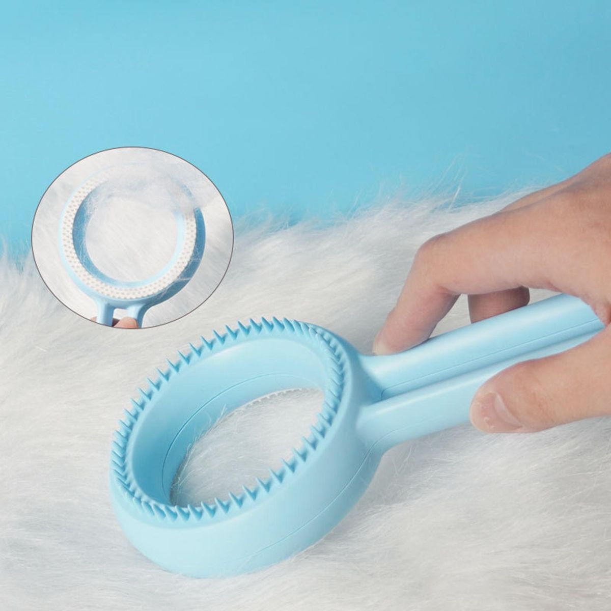 A pet comb is designed in the shape of a circle, with bright colors and exquisite workmanship. And it has an ergonomic handle, which is comfortable to hold and convenient to use.