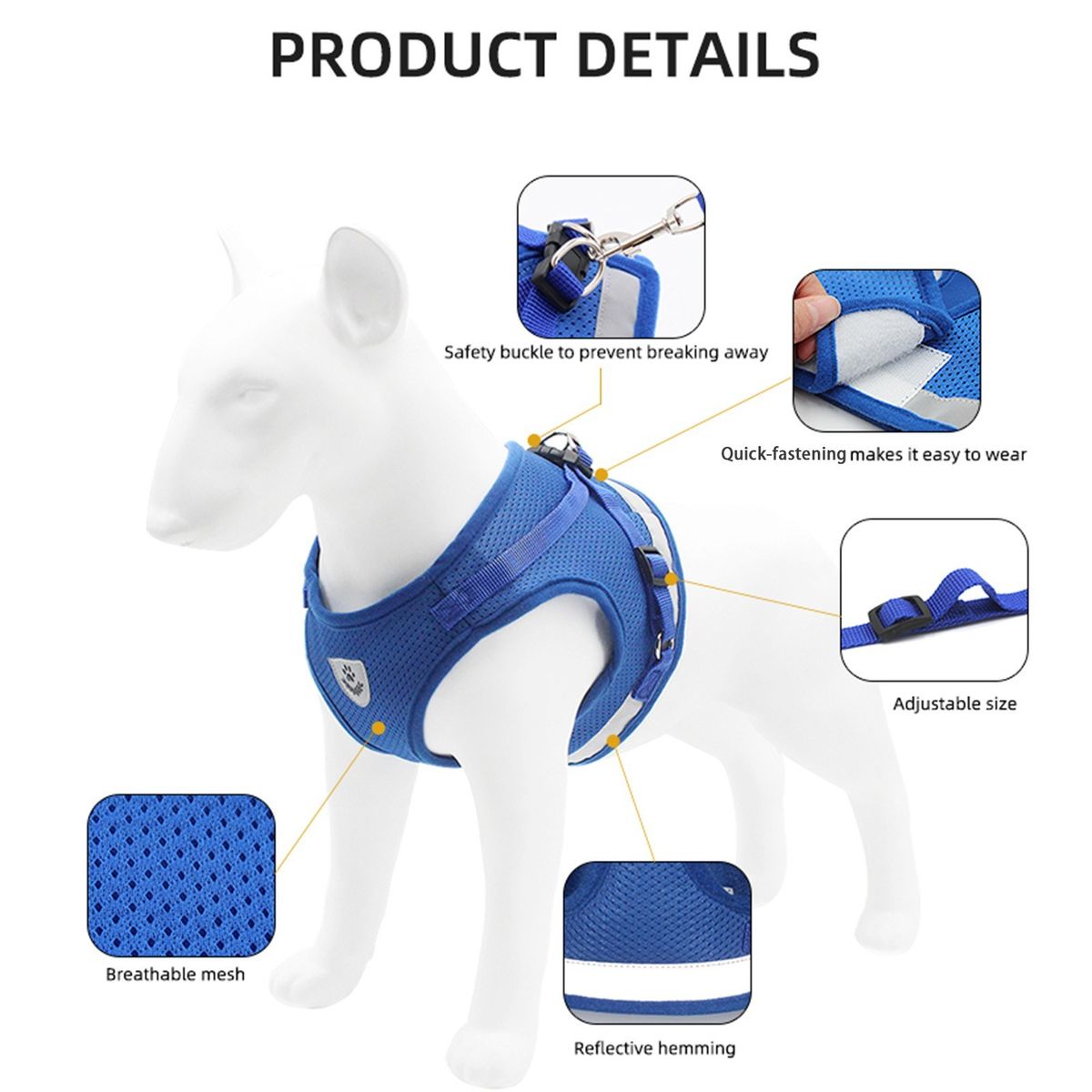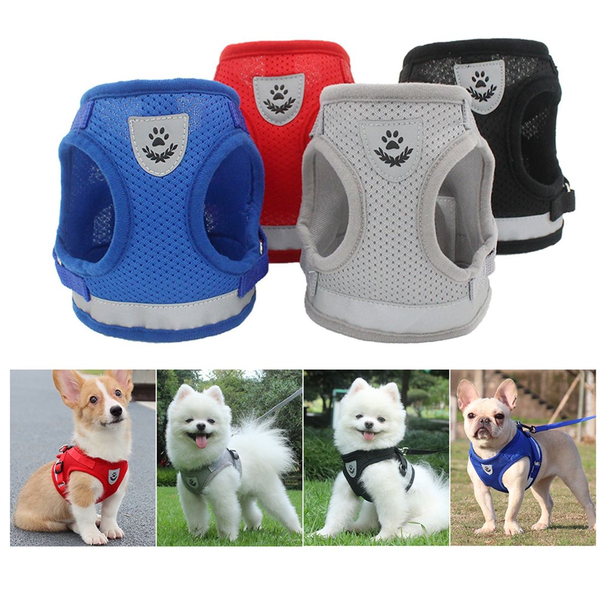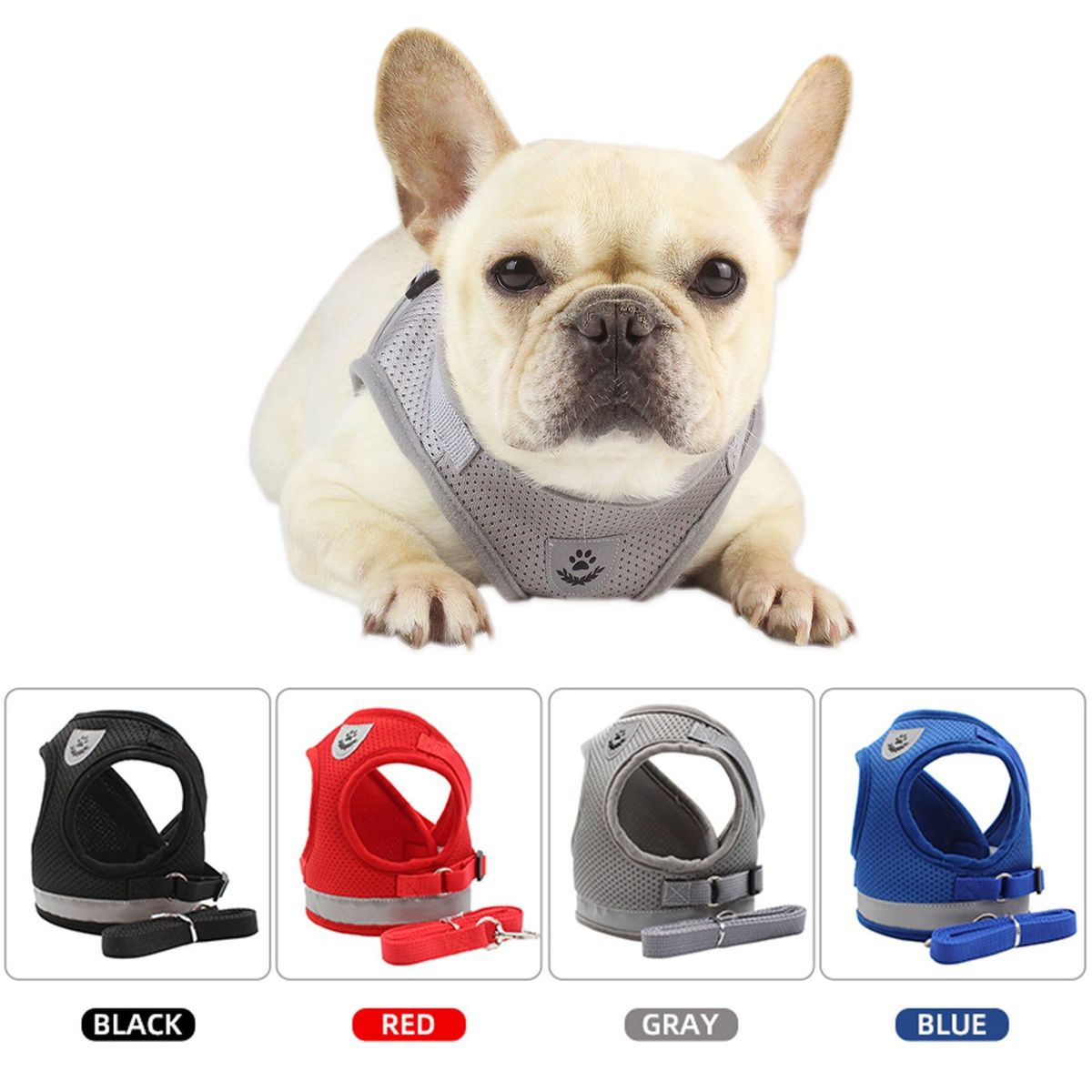 HARNESS AND LEASH SET: One walk-the-dog set consists of a mesh harness and a leash. Vest style, adjustable design and reflective strips allow convenient walking.