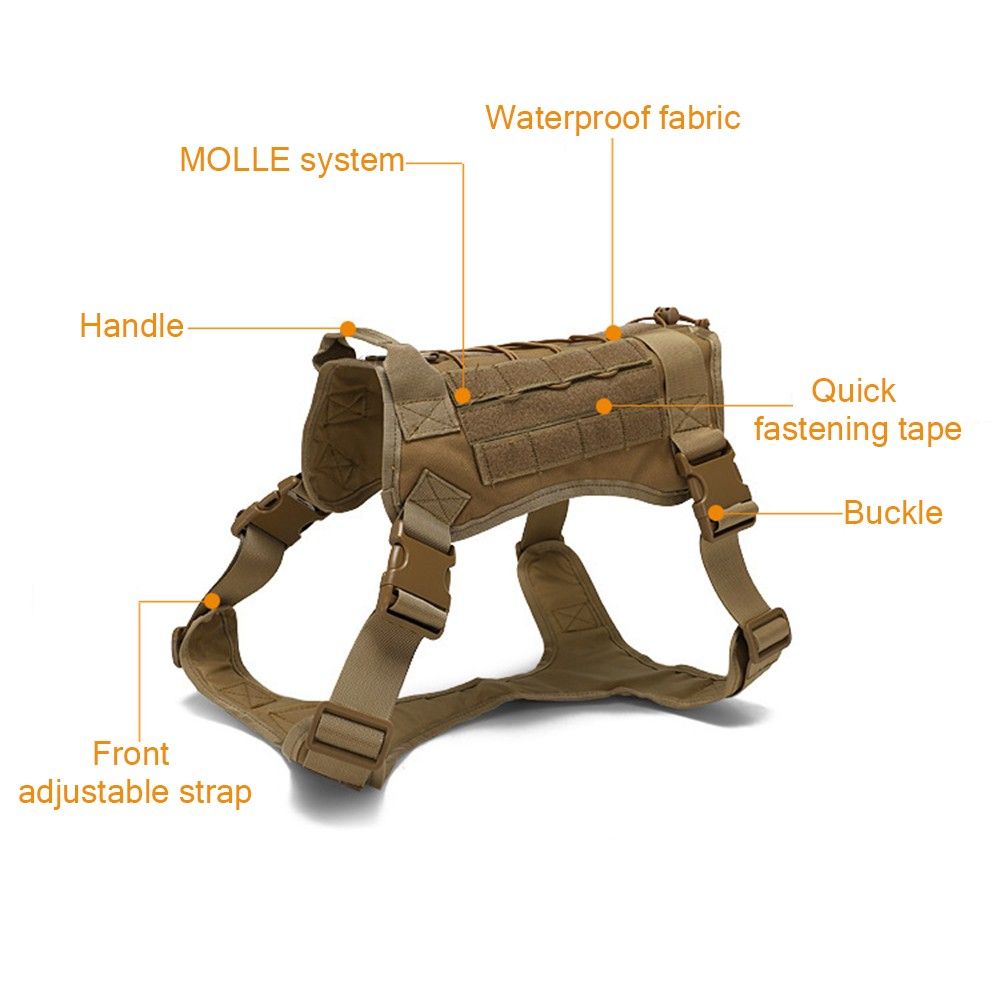 Dog harness made from waterproof fabric meets high-standard quality. Its adjustable straps make it easily fit for different sizes. When taking your dog outdoors, put this on it to train it for carrying stuff.