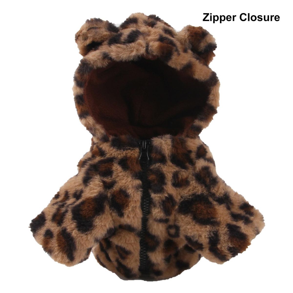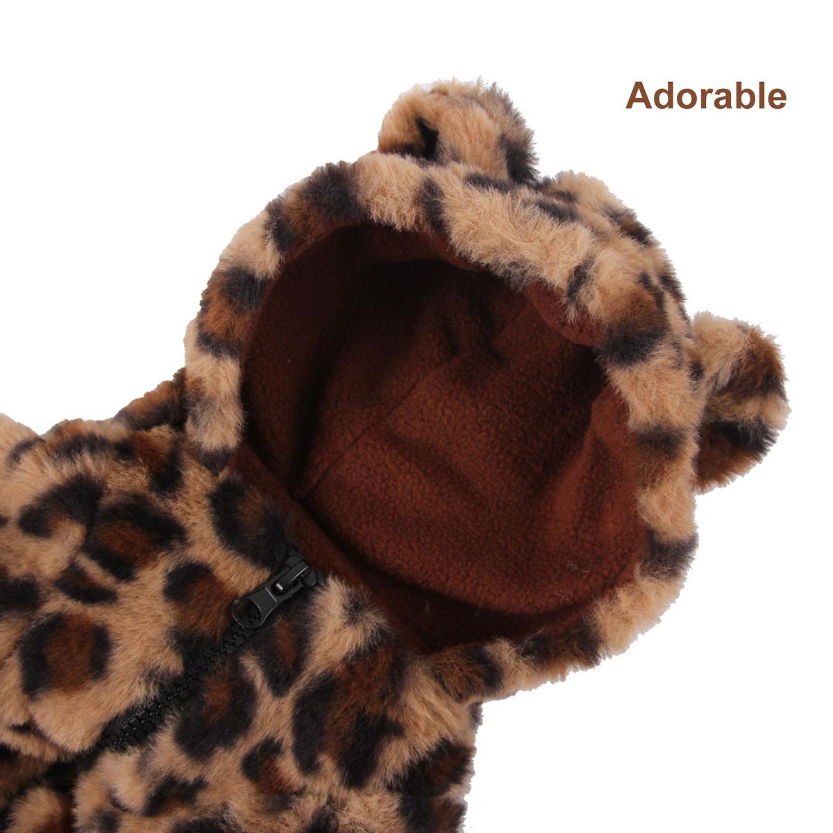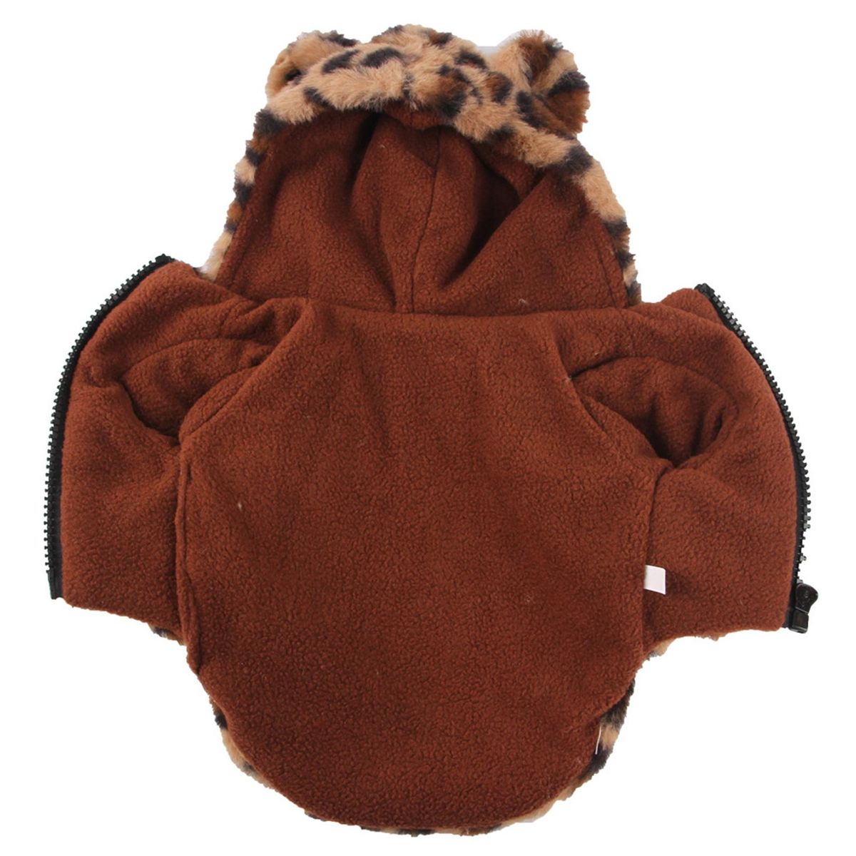 Designed with its leopard print pattern and cute ears, this pet hoodie coat is very fashionable and can make your little dog or cat look cute and attractive. In addition, it is designed with a zipper closure for easy on and off.