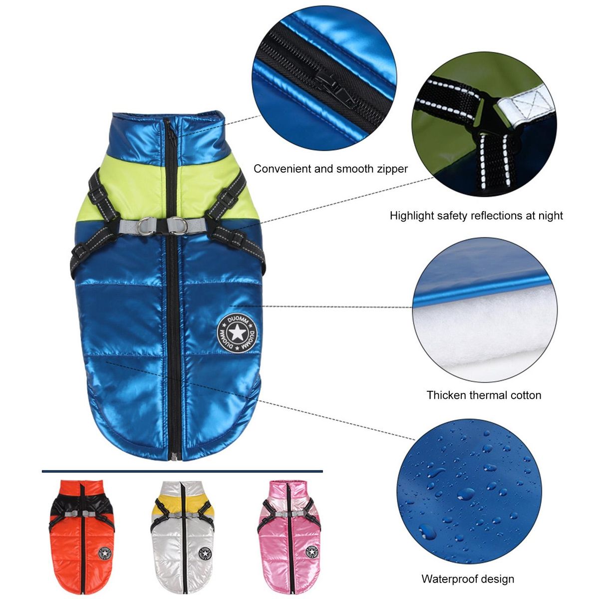 With a D-ring design, our ultra-thick pet winter coat can be easily paired with a traction rope. And more it prevents moisture, freezing rain or snow, and helps maintain warm air, keeping your dog warm at all times.