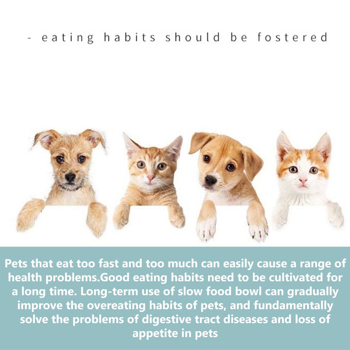 Good for Pet's health: Extend the feeding time to promote your dogs and cats absorb nutrients better, and prevent them from eating too to cause gastrointestinal discomfort and gain overweight.