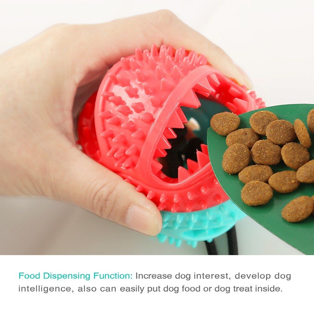 Molar Food Dispenser Interactive Toy-Concave convex design, with greater friction on teeth, which helps clean calculus and dirt effectively, this molar ball helps to keep teeth clean. And, it is also a toy for dispenser food. You can put pet snacks into the molar ball, the snack will leak out from the hole as a reward to your dog.