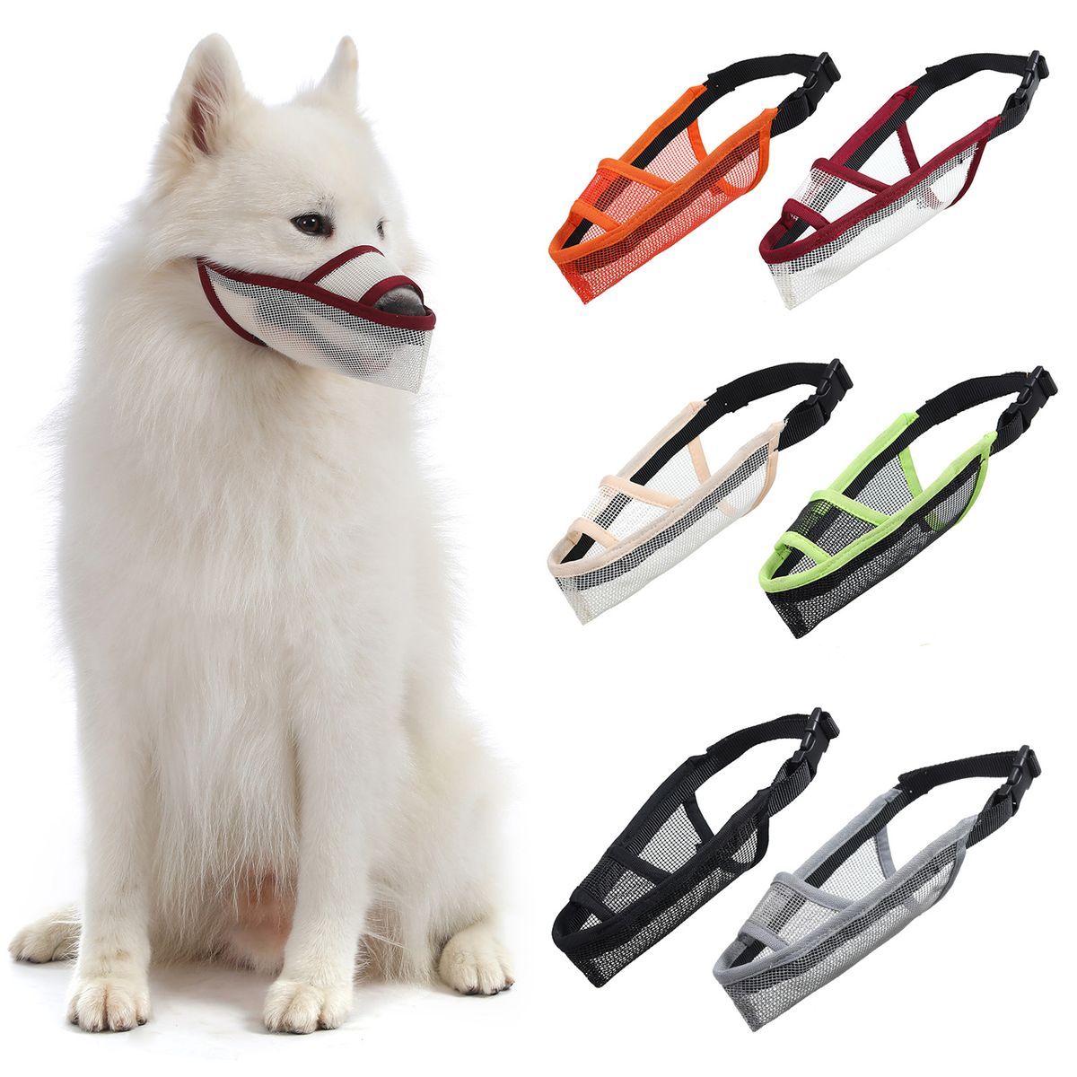 To stop the dog\'s biting, destructive chewing, barking, or licking wound, this muzzle is a practical choice. Made of hollow-out mesh, this muzzle is lightweight to wear and allows freedom of panting and drinking. Try it when the dog is alone at home, or try it during walking the dog.