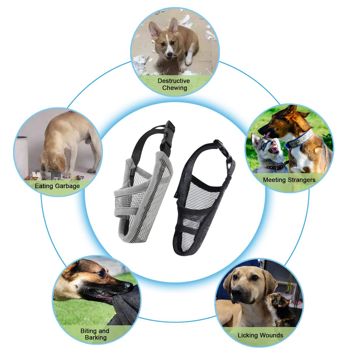 PROTECTIVE MUZZLE: Practical muzzle prevents the dog from biting, chewing, barking, and destroying. A great accessory for a dog\'s daily life: for walking the dog, meeting strangers, bathing, post-operation, etc.