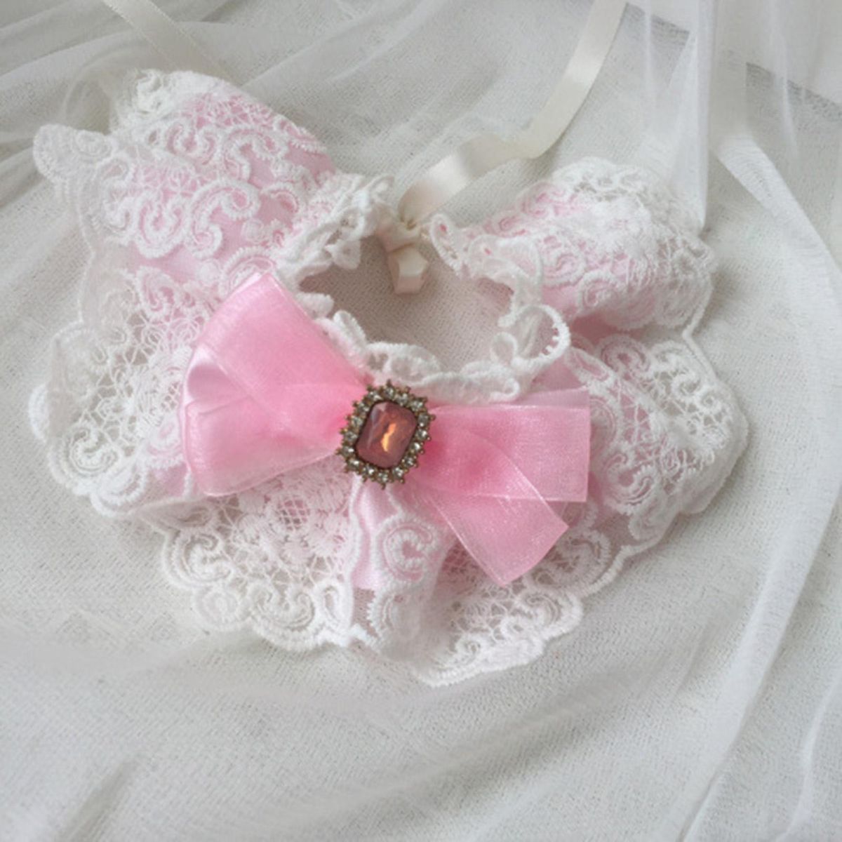 With a bow, faux gemstone and lace trim, this pet collar can give your cat or dog an classy princess look.