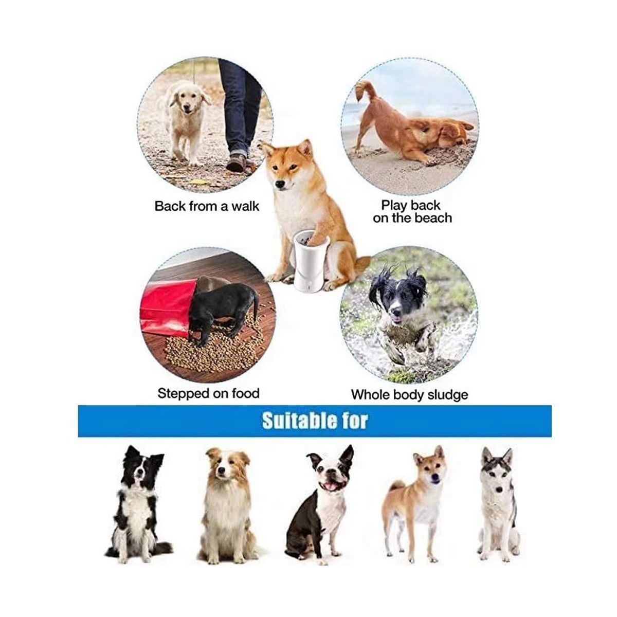 FEATURES: 1: Easy Use and Clean-Just fill with water and shampoo in the cup, insert the muddy paws, turn it on, then it will clean your pets' dirty muddy paws automatically.