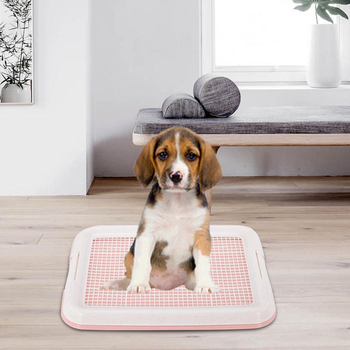 【Product Size】: The dog potty tray is about 47cmx35cmx3.5cm/18.50inchx13.78inchx1.38inch, suitable for small size dogs.