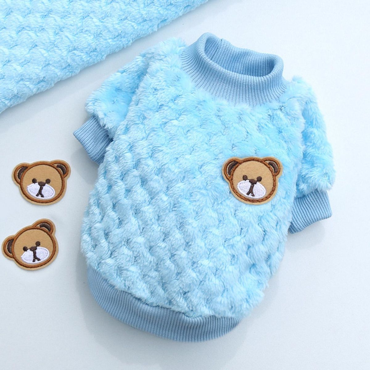 With a cartoon bear embroidery pattern, these dog clothes are cute and delicate. It has a soft texture, is comfortable and deformation-proof, very durable.
