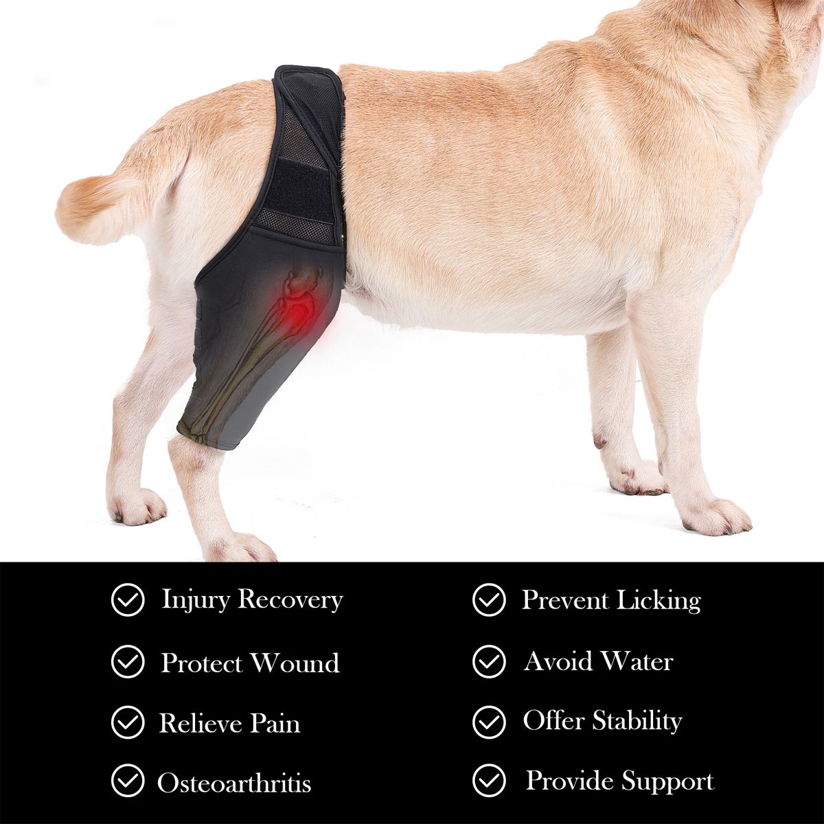 This brace helps support the dog\';s injured leg for recovery and prevents further injury like licking. It is breathable and comfortable, so you don\';t need to worry about mobility. And it is convenient for you to put on and take off due to quick-fastening tape.