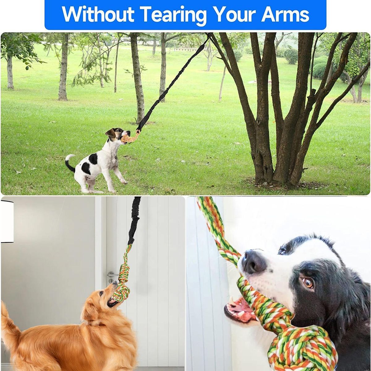 The sturdy dog bungee tug toy can create a force for your dog to tug against. And the bite-resistant braid design can prevent the dog from rupturing the leash due to pulling.
