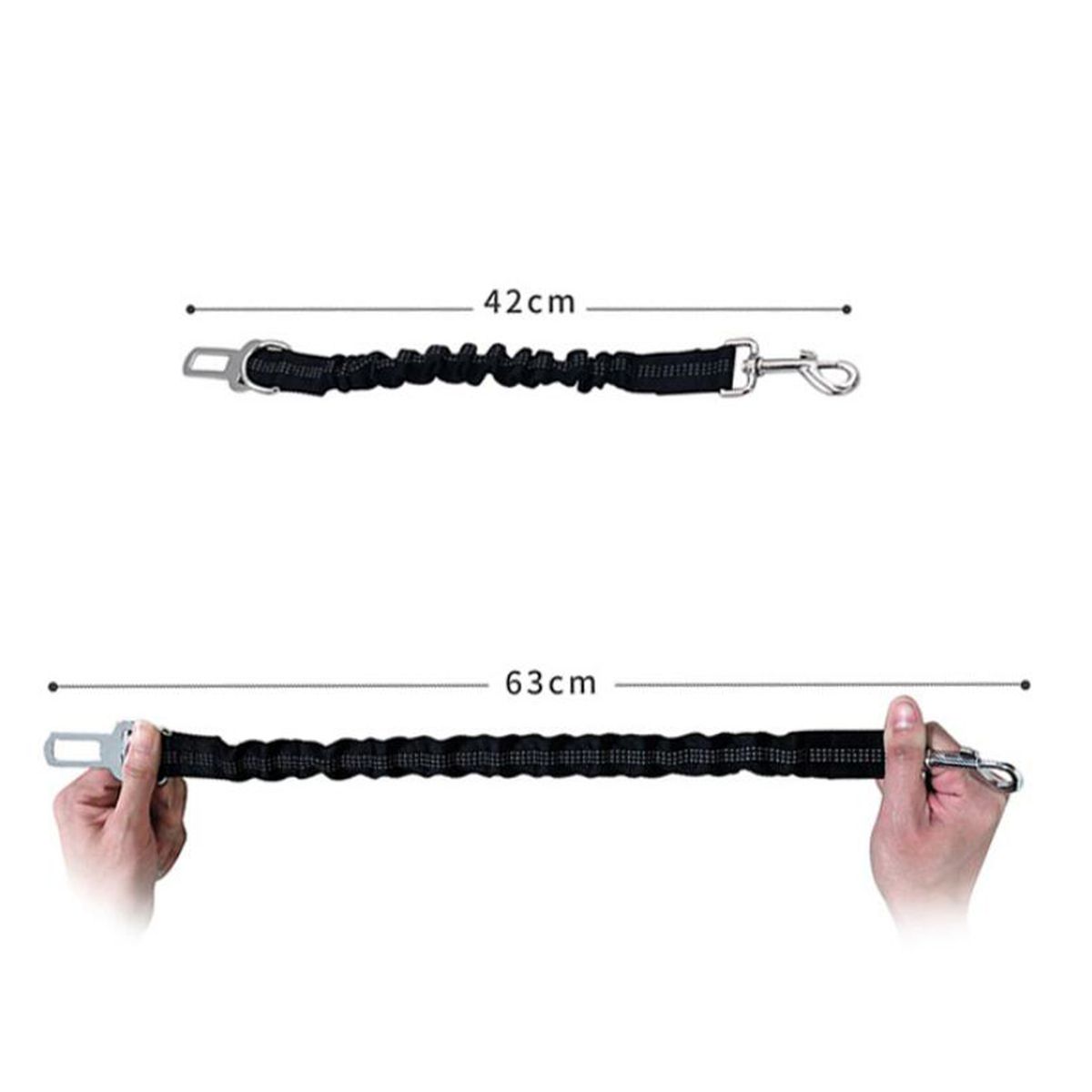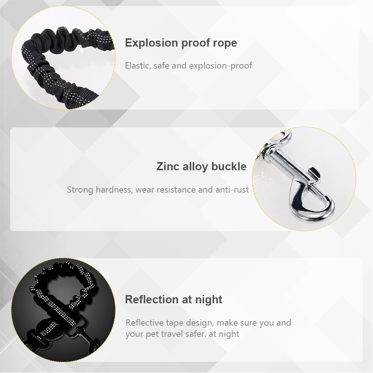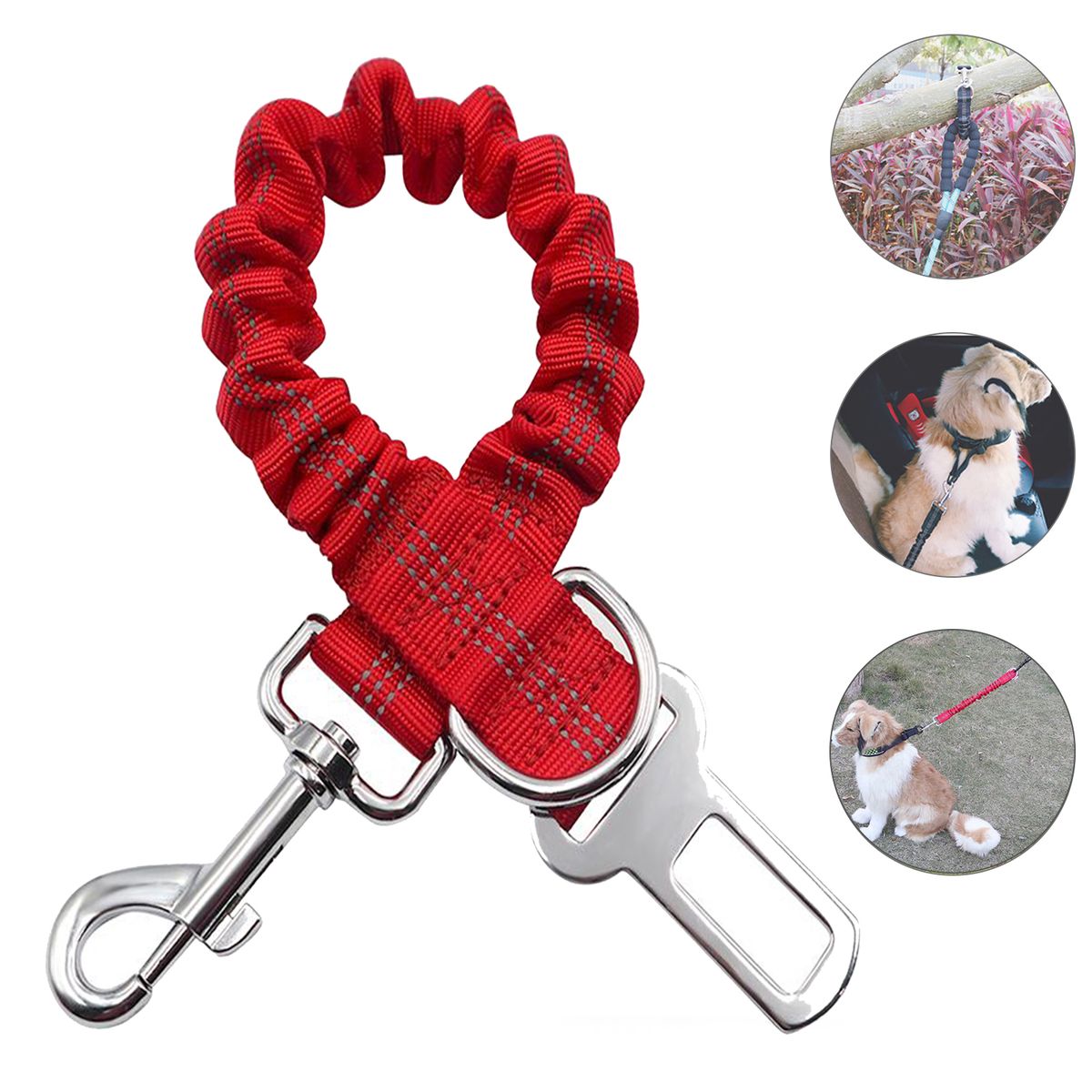Explosion-proof Design: High elasticity, can prevent the dog from suddenly brake or sharp turn, improve the safety of pets when driving. Maximum tension: 200kg.