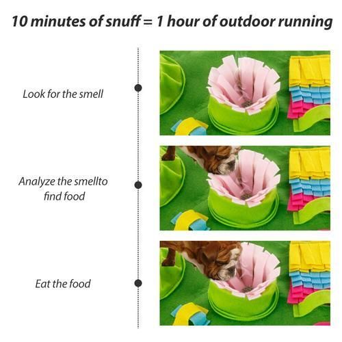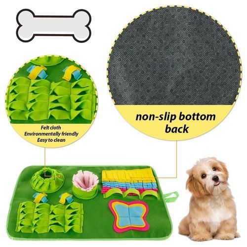 1.Educational training mat: This snuff mat imitates the look of looking for food in the grass and fields, satisfies the dog's natural curiosity, and enhances its sense of smell. Promote physical and mental exercise while reducing stress.