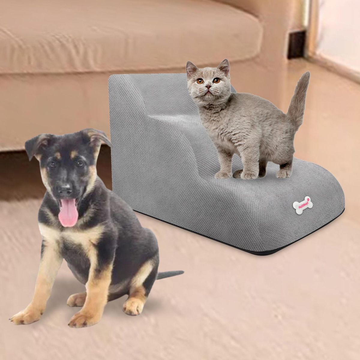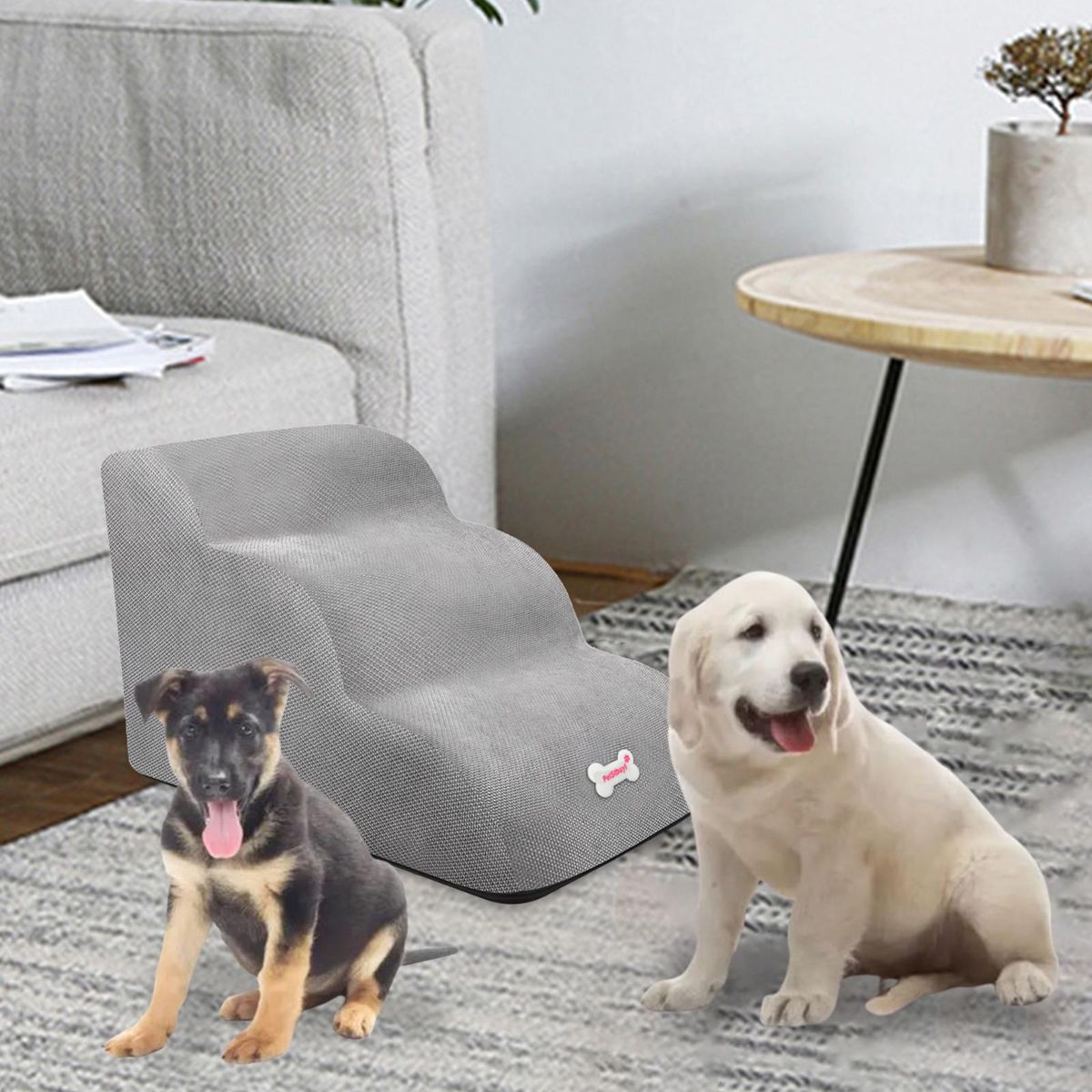 【PREMIUM MATERIAL】: The dog stair is made of high quality cloth material, soft and breathable, not easy to deform, climbing up and down is comfortable for your pet. Size60cmx30cmx33cm/23.62inchx11.81inchx12.99inch.