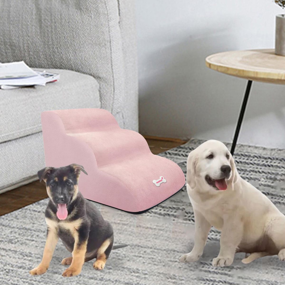 【3 STEPS DOG STAIRS】: This pet dog stairs can help your pet easily reach the couch, sofa, bed or other favorite places, realize the freedom of space and free the hands of the owner.