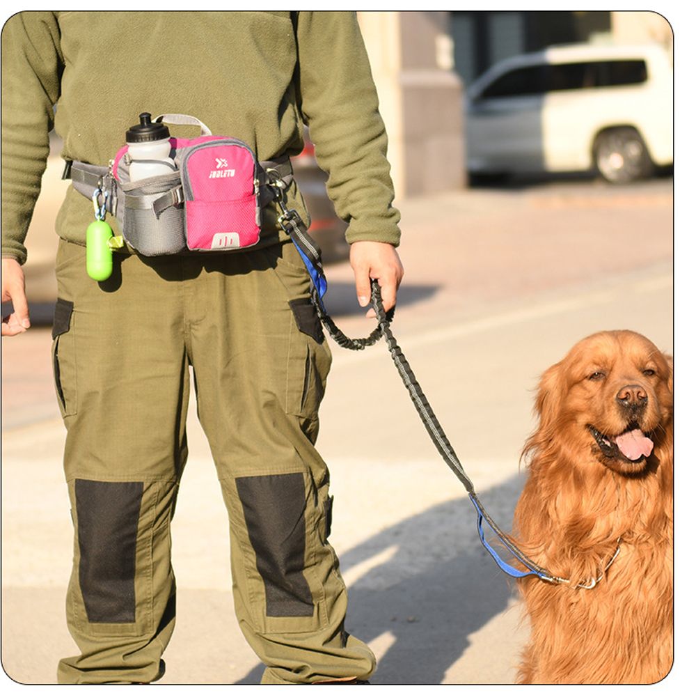 Dog Training Waist Bag Hands Free Dog Bungee Leash Set-Red