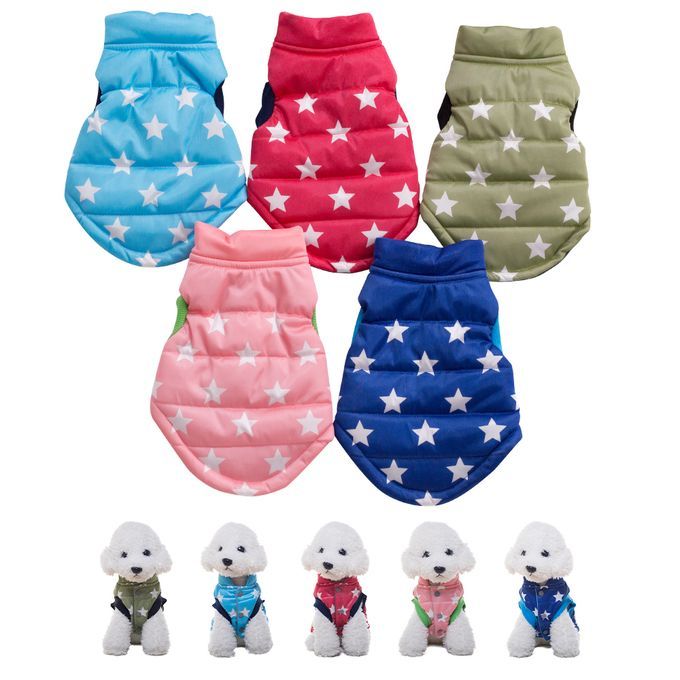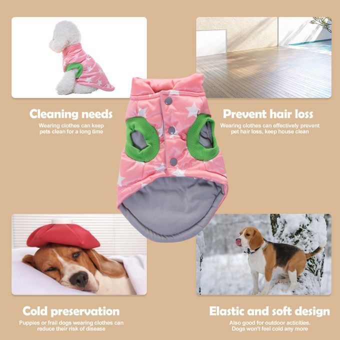 [Material]: Made from high qualitty polyester fiber and cotton filling, windproof. After many times of testing, it is comfortable to wear. Not only makes the dog warm and comfortable, but also more beautiful and lovely.