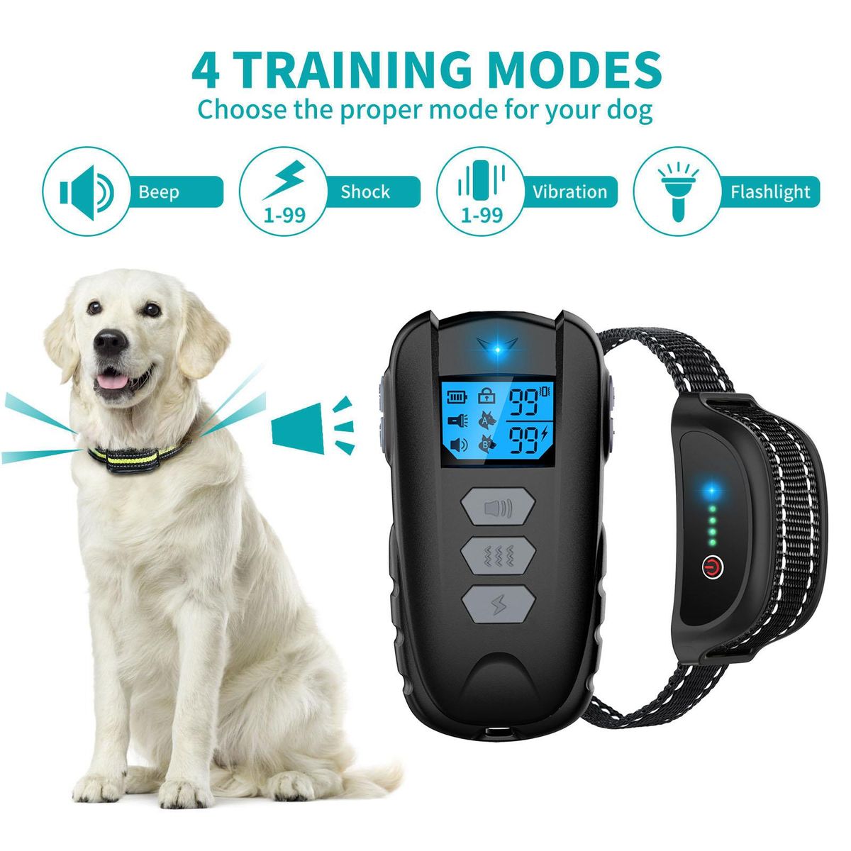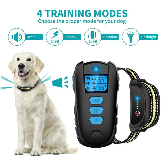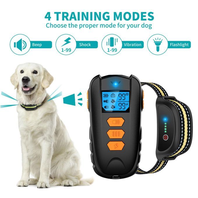 This dog training collar offers 3 individual training modes, beep, vibration, and shock. 10-99 file adjustment, adjust the receiver static and vibration size, you can according to your pet's personality and size to adjust.