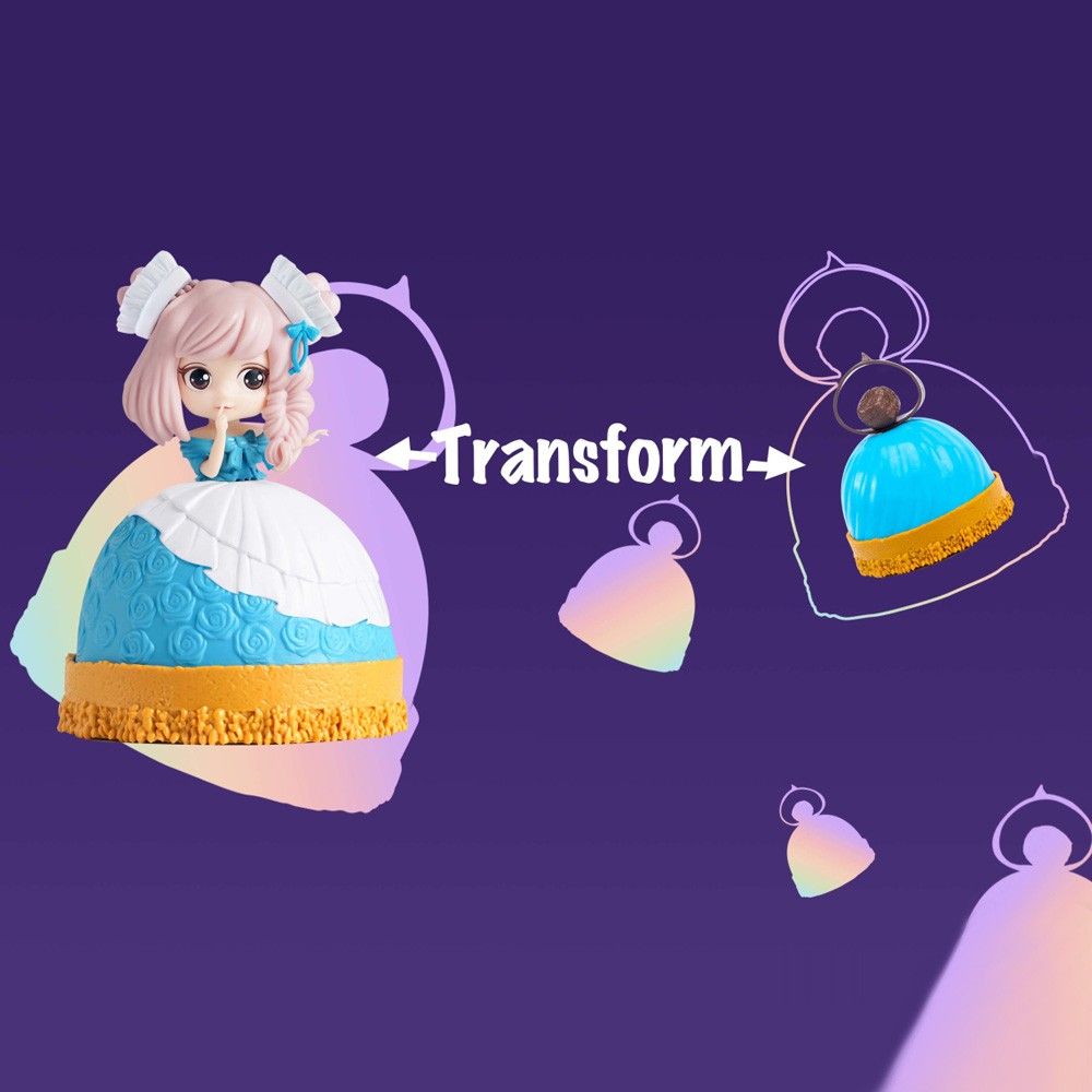 This is a toy that can be turned from a cake to a princess. Each doll can turn into a sweet and lovely princess. Flip the edges, the princess will emerge from the cake.