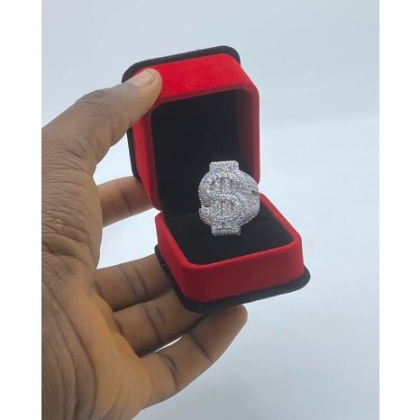 Buy Dollar Sign Iced Silver Luxe Men's Ring in Nigeria
