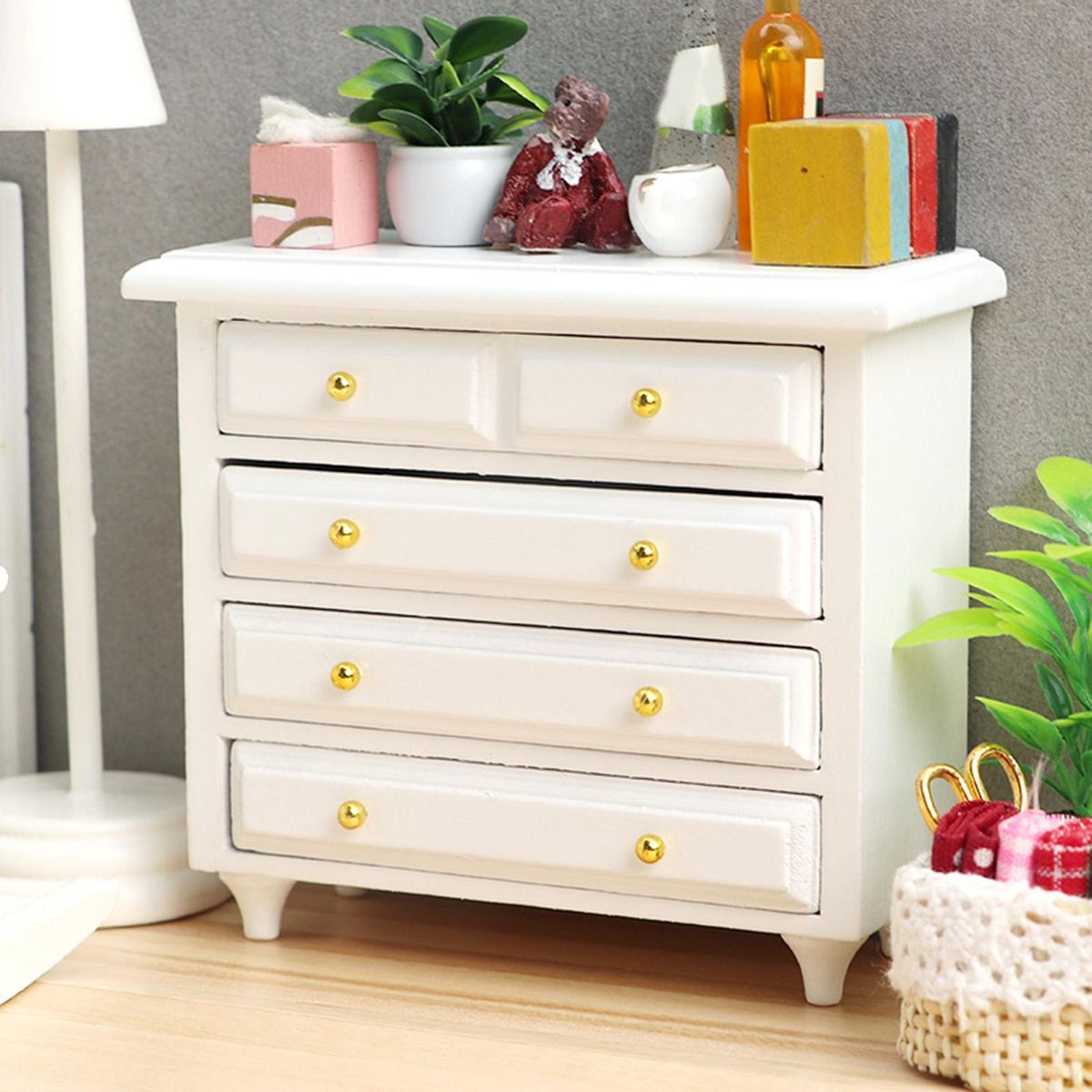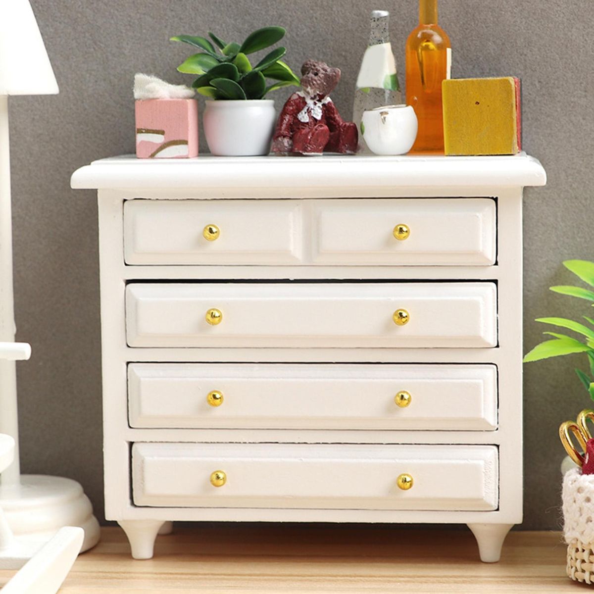 Mini furniture for dollhouse bedroom cabinets are actual and high-reproduction, drawers can be pulled freely, full of realism, exquisite workmanship, let you put it down.