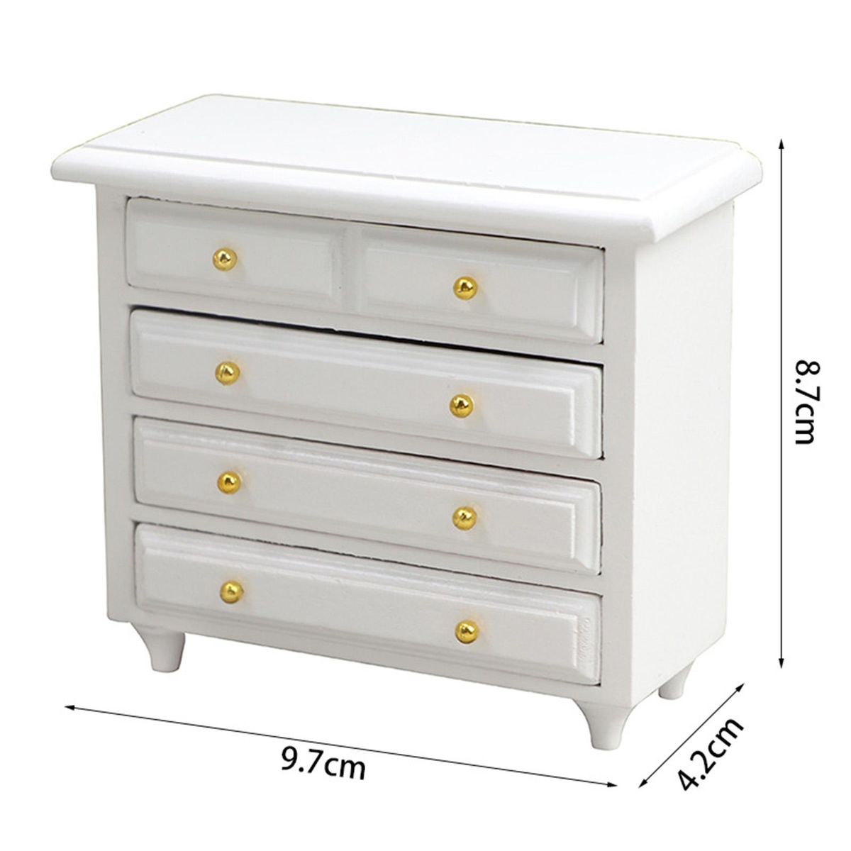The length of this dollhouse cabinet model is 9.7cm, the width is 4.2cm and the height is 8.7cm.