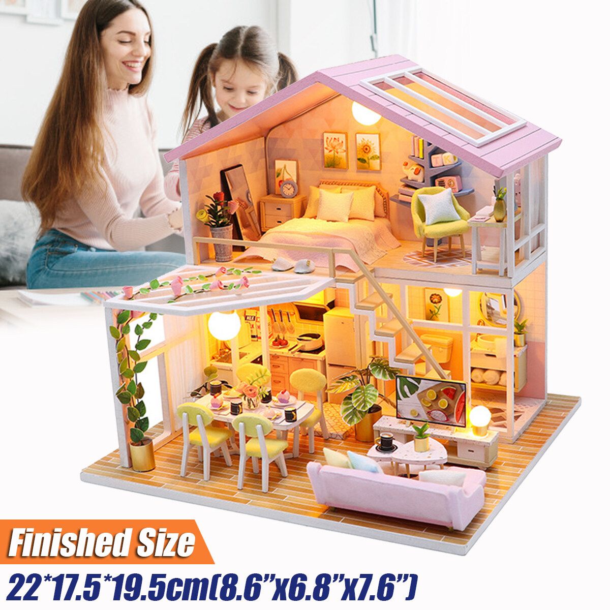 Similar ItemsDescription1:24 DIY Dollhouse Miniature Furniture Kit LED Kids Birthday Xmas Gift Pink House