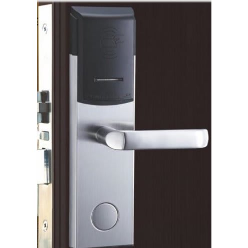 RFID Card Electronic Hotel Door Lock Access Control with already programmed with master cardsIt is mainly used in Hotels and widely in schools, hospitals, airports, warehouses, offices, and other door lock applications. The lock provides you with all the features that you will need to manage your hotel other access control applications. It offers security and peace of mind. Easy installation and low maintenance. Lock comes already programmed with cardsFeatures:304 Stainless steel cover plate reinforced by a 1.8mm / 0.07in thickness steel plate for added securityApplicable with European standard mortise or ANSI mortiseAnti-panic exit functionDetect card mode: Advanced Micro WaveCan work with softwareSuitable for hotel,commercial office,school,government,hospital,marine,residenceParameters:Applicable Card: M1 MifareMaterial: Stainless Steel 304Opening ways: Cards, Mechanical KeyBattery: 4 Standard AA alkaline batteries, 6 months in normal state (Batteries not included)Indication: Light, Sound (If mute mode is required, please tell us before placing order)Deadbolt Indication: Blue and red light when touch key cardUnlocking record for trail: YesLow voltage warning: YesPassage mode for meeting room: YesStatic consumption: 12uADynamic consumption: 300mAHumidity: 20%-80%Working temperature:-10?~60? / 14?~140?Door Open Direction:Left-hand or Right HandHidden mechanical keyhole, to ensure the door can be unlocked in emergency.Use ANSI 70/95 mortise with bolts lock tongue inside.Functions:1. Low voltage alarm function, when the voltage is below 4.7v, the lock will warn by light and voice.2. Security alarm function, when the door is invalid closed, the lock will warn 5 sec.3. Historical records storage function, can store almost 2000 records, including unlocking records of mechanical key.4. Anti-jamming function, can prevent the disturbance from outside magnetic field.5. Power saving function, e micro computer board come to sleep mode when it is not running.6. Expanded one-card-pass function, RF card be used for parking lot, elevator controller, inductive electronic swith, etc. Note: 1. Please tell us your door opening direction: right push, right pull, left push, left pull. 2. Please tell us where you intend to use this lock in apartment, office, home or hotel, motel (the software programming are different, and they are not exchangeable). 3. if you intend use the lock in a hotel or program the cards yourself, the better choice is to buy a card Encoder together.4. We can offer free support during installation or assign our Technician to install at extra cost5. Extra Cards can be purchased seperately