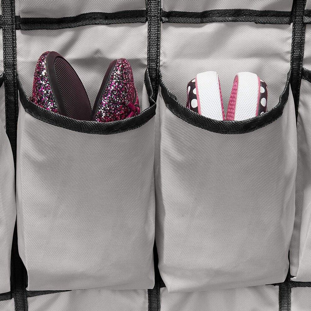 Over the Door Shoe Organizer, 24 Large Pocket Shoe Rack Over the Door Complete with 4 Strong Metal Over Door Hooks?KEEP YOUR SHOES HAPPILY PAIRED UP.No more searching at the back of your closet for that lost shoe! This shoe door hanger will keep everyone in your home organized!?QUICKLY GRAB WHAT YOU NEED.Each heavy duty pocket is large enough to fit a size 13 mens shoe or even fit a pair of flats/sandals in one of these large pockets!?LONG-LASTING:Unlike many over door shoe organizers each pocket is double stitched and is made from premium quality Fabric. Your new heavy duty over door shoe organizer will withstand the of time!?HOOKS THAT FIT MORE DOORS.We include the strongest, most versatile metal hooks out there - hooks that fit wide and thin doors for your closet door, bedroom door or even bathroom door - get your whole home organized!?EASY INSTALLATION.No tools or DIY expertise required, just hang and create storage space instantly! You are just days away from getting your closet door shoe organizer and getting organized!Product DescriptionSpecifications: 50x160cm / 20inch x 63 inchMaterial: Non-woven FabricColor: Grey / BeigeWeight: 0.5kgLoad: 30kgScope of use: storage hanging bag, widely used in home storage and finishing, can be placed in the door, kitchen bathroom closet, etc., save space, convenient and practical, can store shoes, sundries, toys, books, etc.Product list:1x 24 Pocket Shoe Rack4x Stainless steel hooK