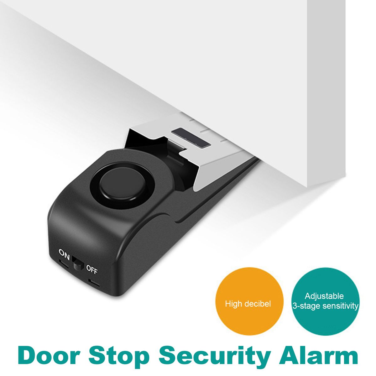Dual function, it can not only be a security alarm, but also a door stopper.