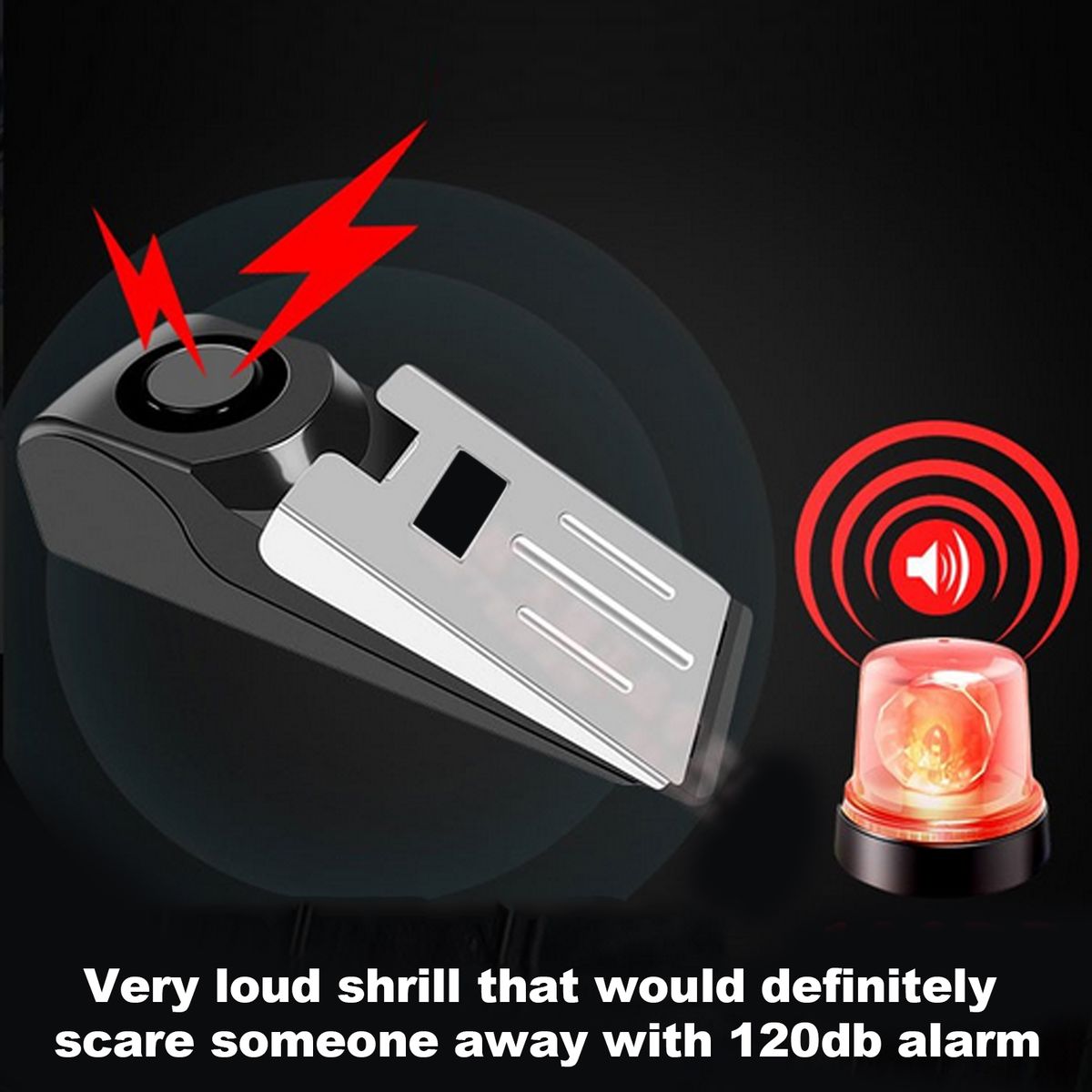 Very loud shrill that would definitely scare someone away with 120db alarm.