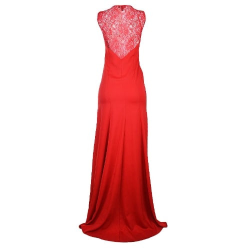 This dress is a long body fitted, stretched Gown, that falls from the back to the Ground like a Tail gown. the front of this dress comes up a little above the feet, for easy movement. This dinner gown has an opening at the back, covered with Red Lace that makes the body visible to see through.the front of this dress is designed with Red Lace added on both sided of the dress. This beautiful Masterpiece is worn to high-class dinner parties, cocktail parties, weddings, and any other special Event, it goes well with Beautiful heels and a good purse to match.