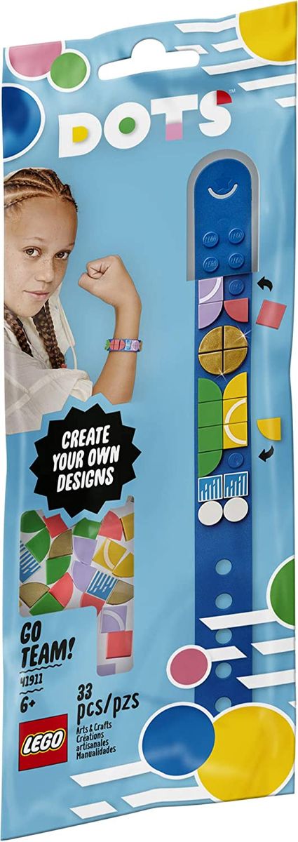 - Encourage your child's love of creative DIY with this spirited LEGO DOTS Go Team! Bracelet (41911) set, featuring an adjustable band and 32 colorful tiles; Play starts with decorating, right out of the bag