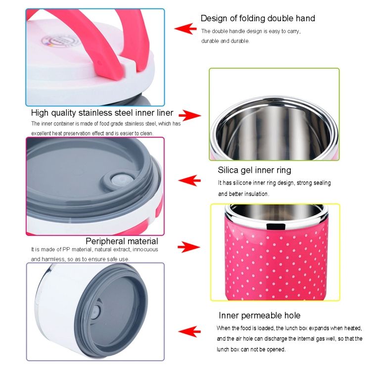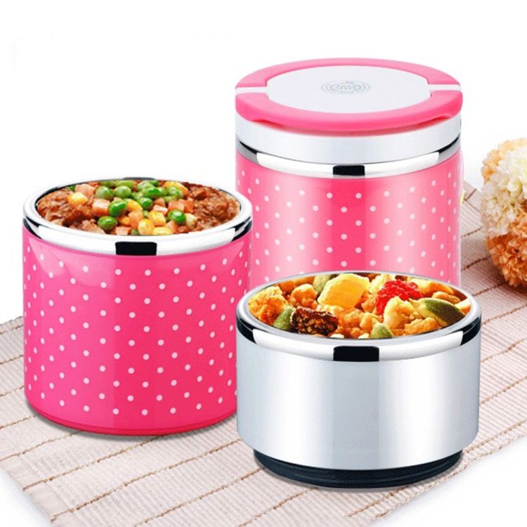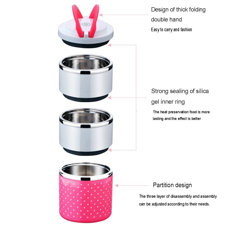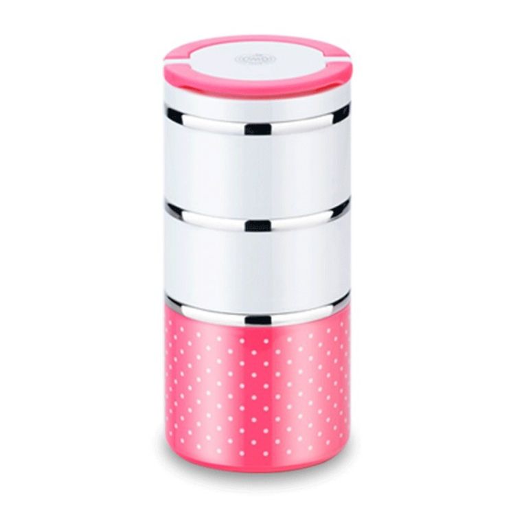 Dots Pattern Three Layers Insulated Round Lunch Boxes