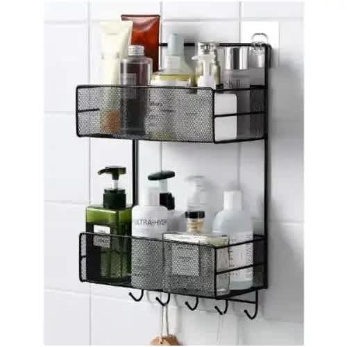 Buy Double Bathroom Storage Shelf For Organization Rack Holder With Hooks - Black in Nigeria