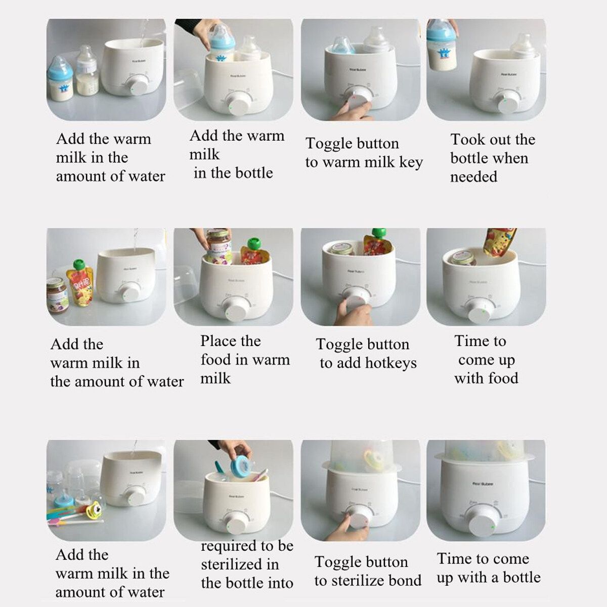 ● 3 in 1 function for warming milk (104℉), heating supplementary food (158℉) and sterilization (212℉).