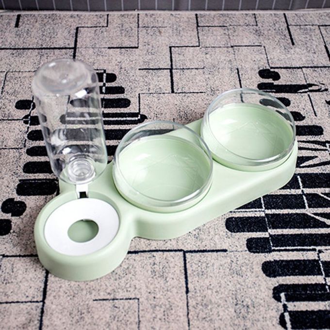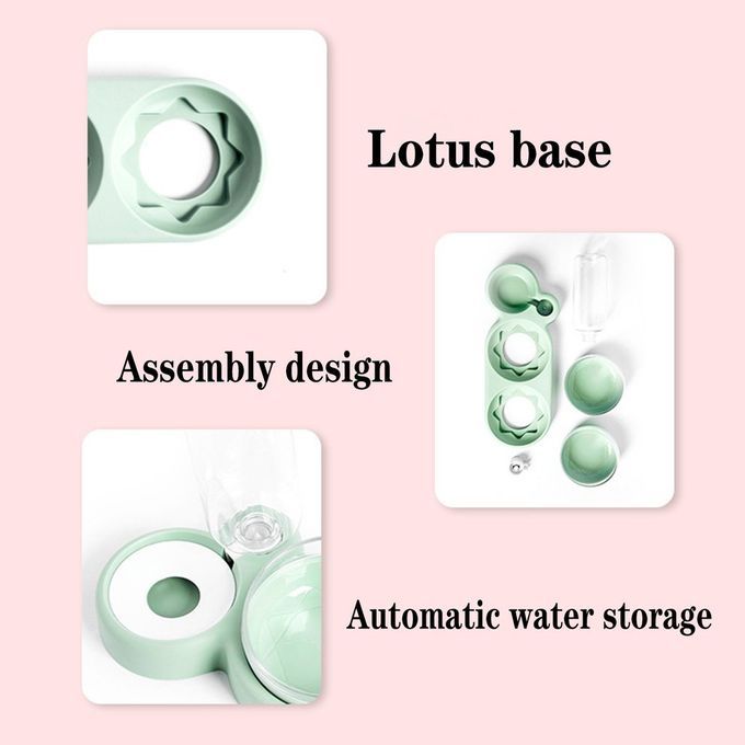 Double Bowl Automati Drinking Pet Bowl Automati Water Storage Lotus Base-green
