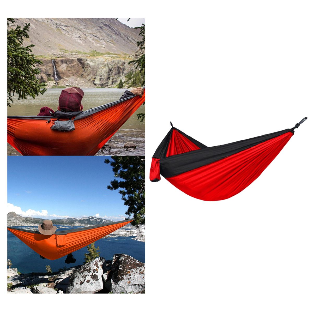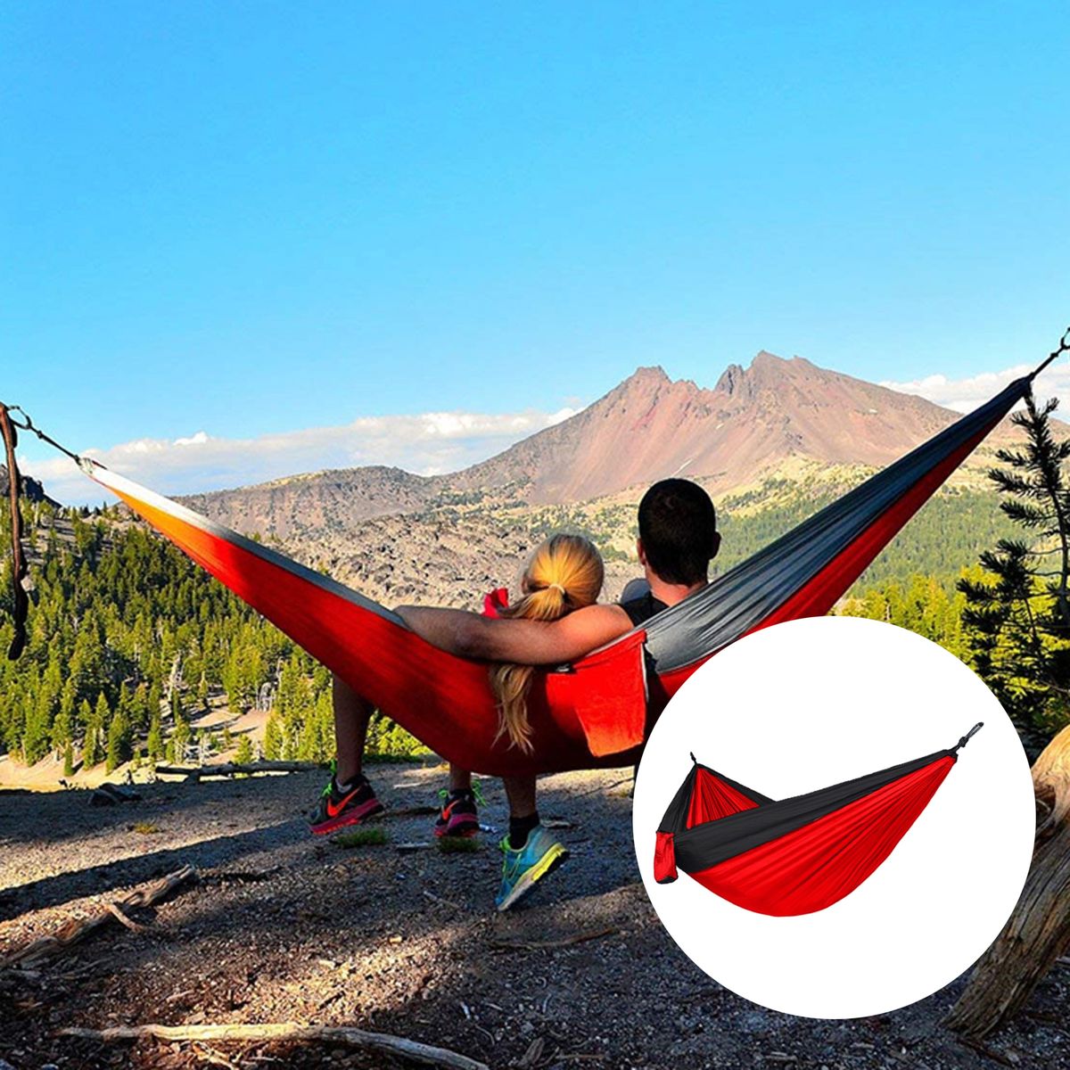 Lightweight and convenient, our travel hammock weighs only 19oz. Measures 8.86 feet long by 4.6 feet wide for or two people.