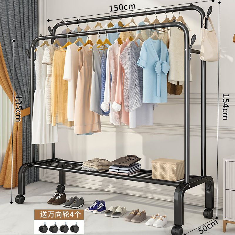 - Coat rack and shoe rack in one: The top double poles for hanging clothes, the bottom layer board can put shoes, one thing is multi-purpose.