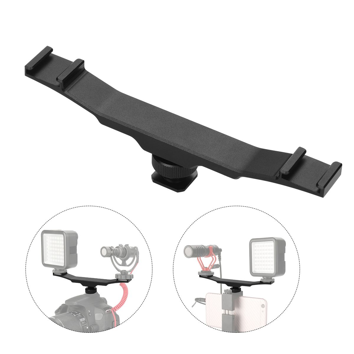 Double cold shoe mounts allow you to mount both LED light and mic at the same time.