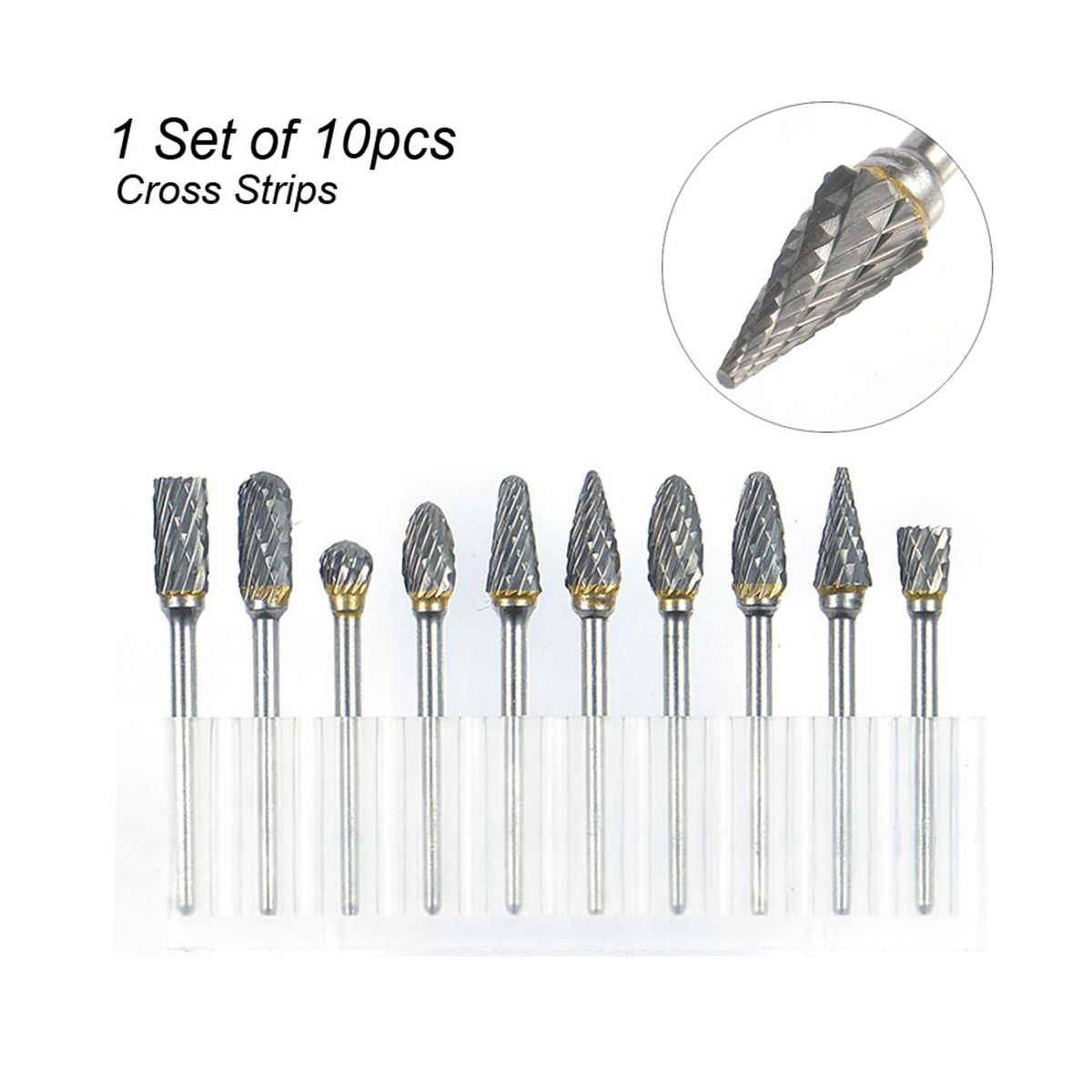 Packed with plastic storage case for safety storage and protection. The working life of these solid rotary burr is 10 times longer than high-speed steel and 200 times longer than grinding wheel.