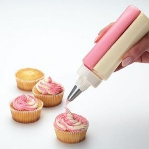 - Multi Utility Two Colorr Icing Piping Cake Cream Pastry Decorating Bottle with Stainless Steel Nozzle. Plastic Dual Action Twin Cake Decorating Icing Bottle.