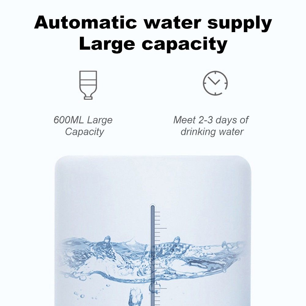 Automatic Water Dispenser: stable control of water level, automatic water supply. 600ml large capacity is enough to drink 2-3 days for your pet.