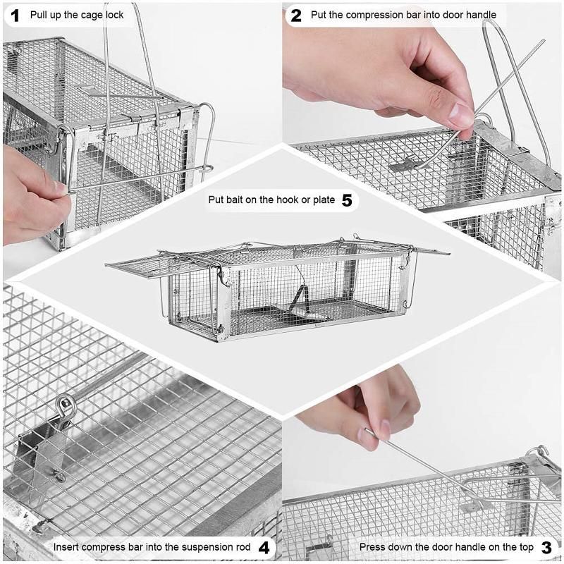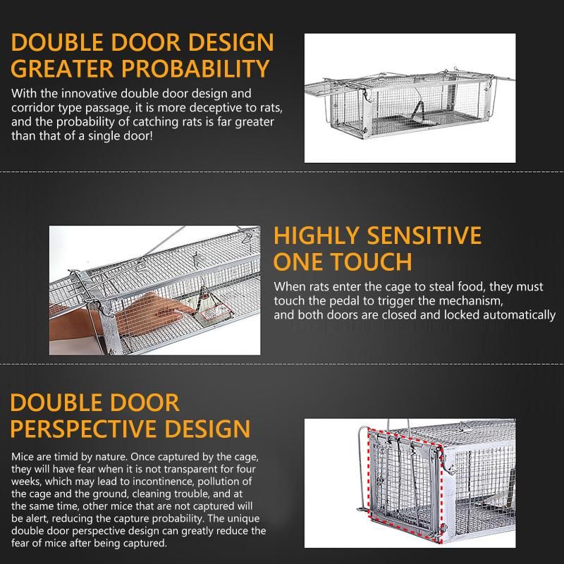 - High sensitive structure to catch rodents and auto door lock to prevent them from escaping.