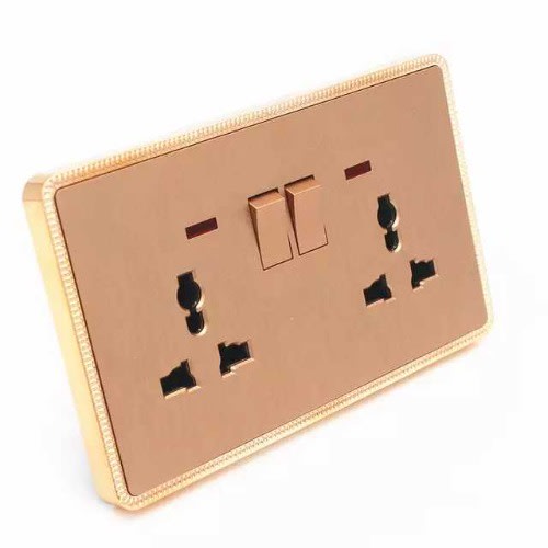Buy Double Electric 13amps, 2-gang Deluxe Gold Switch Socket With Neon in Nigeria